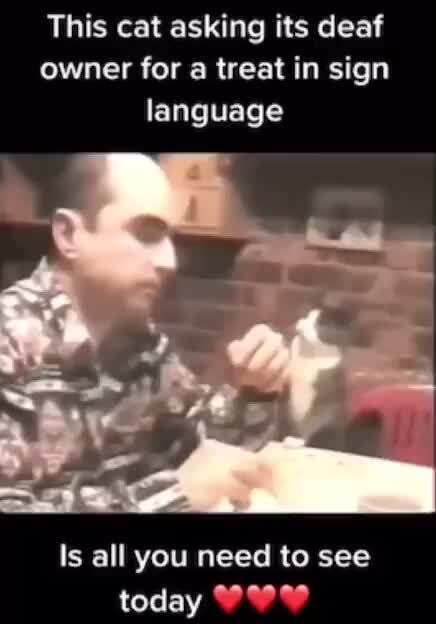 . A stunning video has spread on social media of a smart cat trying to talk to its deaf owner and attracting his attention through sign language. Today when the need to learn sign languages is well understood around the world this video of a cat who has successfully managed to learn sign language inorder to. Today on Reddit I have seen a cat doing sign language standing up right like a human and lastly a cat being brushed upside.